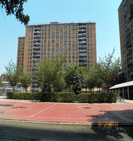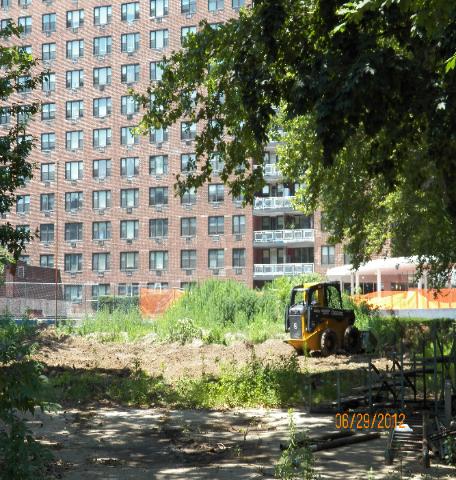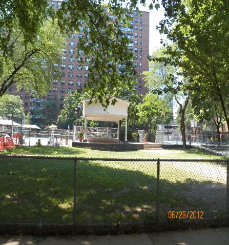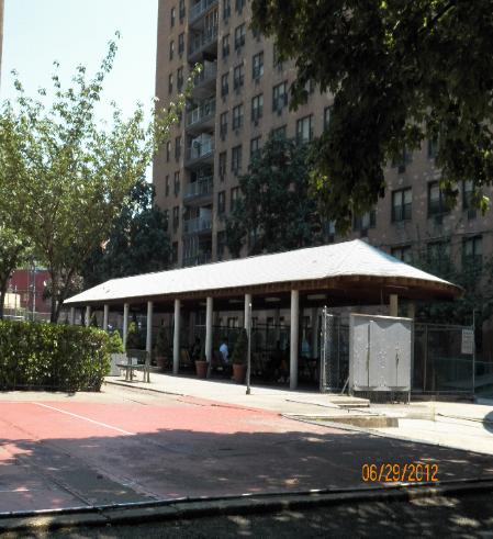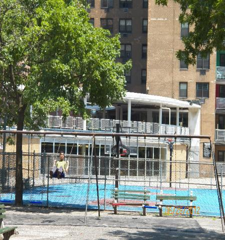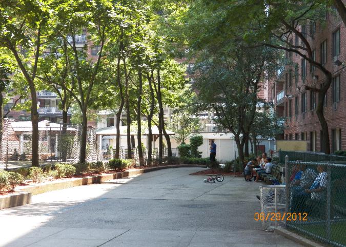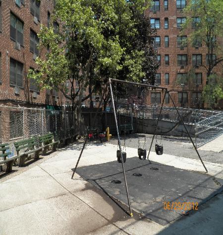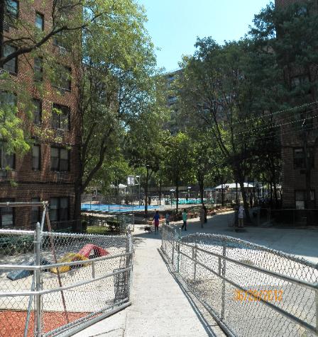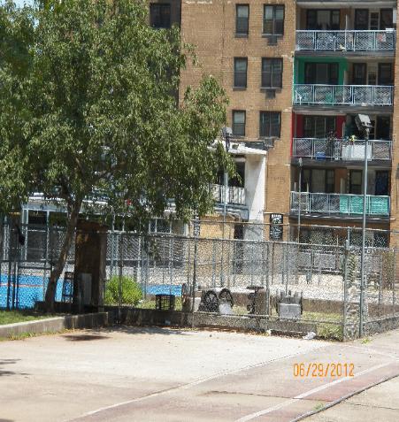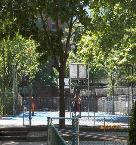 Left - Once a garden used by Seniors. Right - Playground for children with basketball court in the back. Closer to Section 4. New basketball court will become 1/2 court. East Quad.