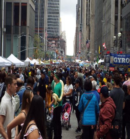 September 3rd - After the rain stopped, I headed into the City. My first stop was in Times Square. I walked to 46th Street to see what was taking place at the Brazilian Festival. It ran from Broadway to 6th Avenue and then up and down a few blocks on 6th. The 46th St. and 6th Ave. celebration formed a T. Lots to eat and buy. I didn't hang around to enjoy any of the acts that would be performing. From 6th Avenue, I took the D train to 145th Street. I first visited the Riverbank State Park, which overlooks the Hudson River. Later, I took the Bx 19 bus to Jackie Robinson Park. The VI Cultural Festival was in full swing when I got there. Good music, good food and lots of people. At about 6 p.m., I headed to Coney Island to listen to El Gran Combo from the boardwalk. Why pay to get into the Ford Amphitheater when one can hear the music clearly on the boardwalk? The boardwalk had many people listening to the music and dancing! The day turned out to be a lot of fun.