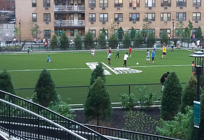 Left and Right - Part of playground seen above. Ramp leading to Sections 1 and 2. Now West Quad.