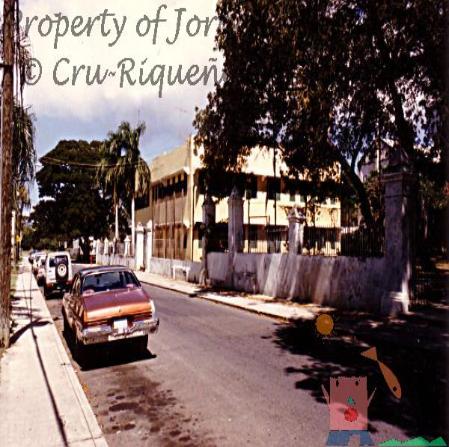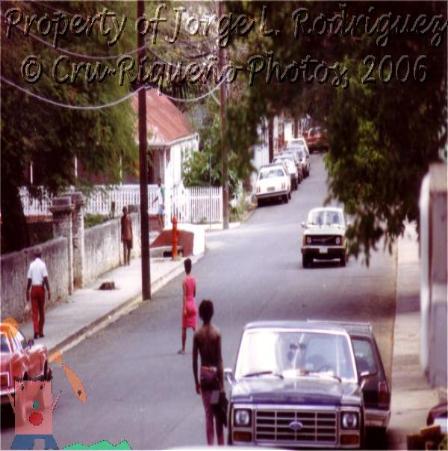 | King Street. St. Croix's King Street was our "Main St." for many years. Then came the malls! Intersection is Custom House St. The one story building was once a bar. Has been rebuilt into a multi-story structure after destroyed by a storm. |