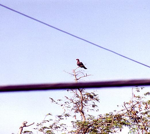 | A Blue Pigeon perched on a limb of a tamarind (taman, tambran) tree. A regal bird with a regal song. |