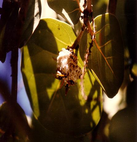 | Wasps making a nest on a seaside grape tree. We call these jackspana, from Jack Spaniard. |